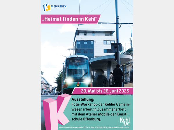 Die Ausstellung „Heimat finden in Kehl“ wird erneut zu sehen sein, diesmal in der Mediathek Kehl. Gezeigt werden Fotografien, die während eines Fotoworkshops des Atelier Mobile im November letzten Jahres entstanden sind. Diese wurden bereits im Januar/Februar 2025 in der Sparkasse Hanauerland Kehl ausgestellt.