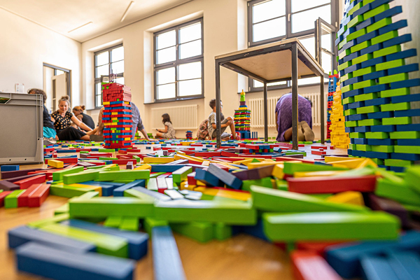 Der allererste Einsatz des Atelier Mobile (bevor wir überhaupt das Mobil hatten) war beim Culture Day im Kulturhaus Kehl im Juli 2022. Kinder und Familien durften zum ersten Mal mit unseren 20.000 bunten Bauklötzen Türme und anderes bauen. Parallel dazu fand ein Theaterworkshop für Kinder mit Marie Wuillème statt.