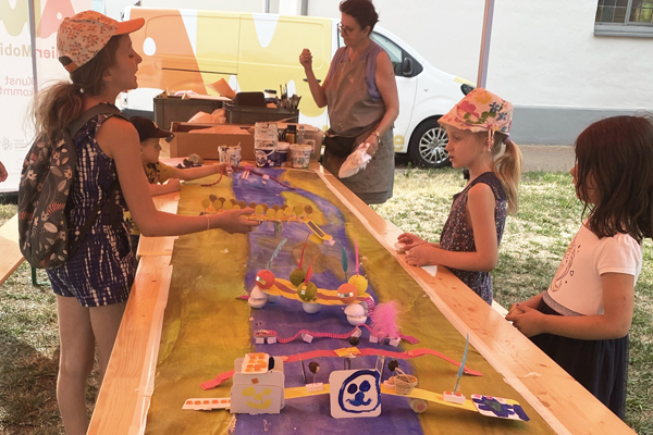 Das Atelier Mobile hat an der Eröffnungswoche des Lebens- und Arbeitsorts Kaleidoscoop teilgenommen. Verschiedene Workshops wurden für Kinder, Familien und Erwachsene angeboten. Eine Gruppe Kinder wurde in Kooperation mit Allemand par Jeu empfangen, sowie eine Gruppe junger Erwachsener mit der Mission Locale von Schiltigheim.